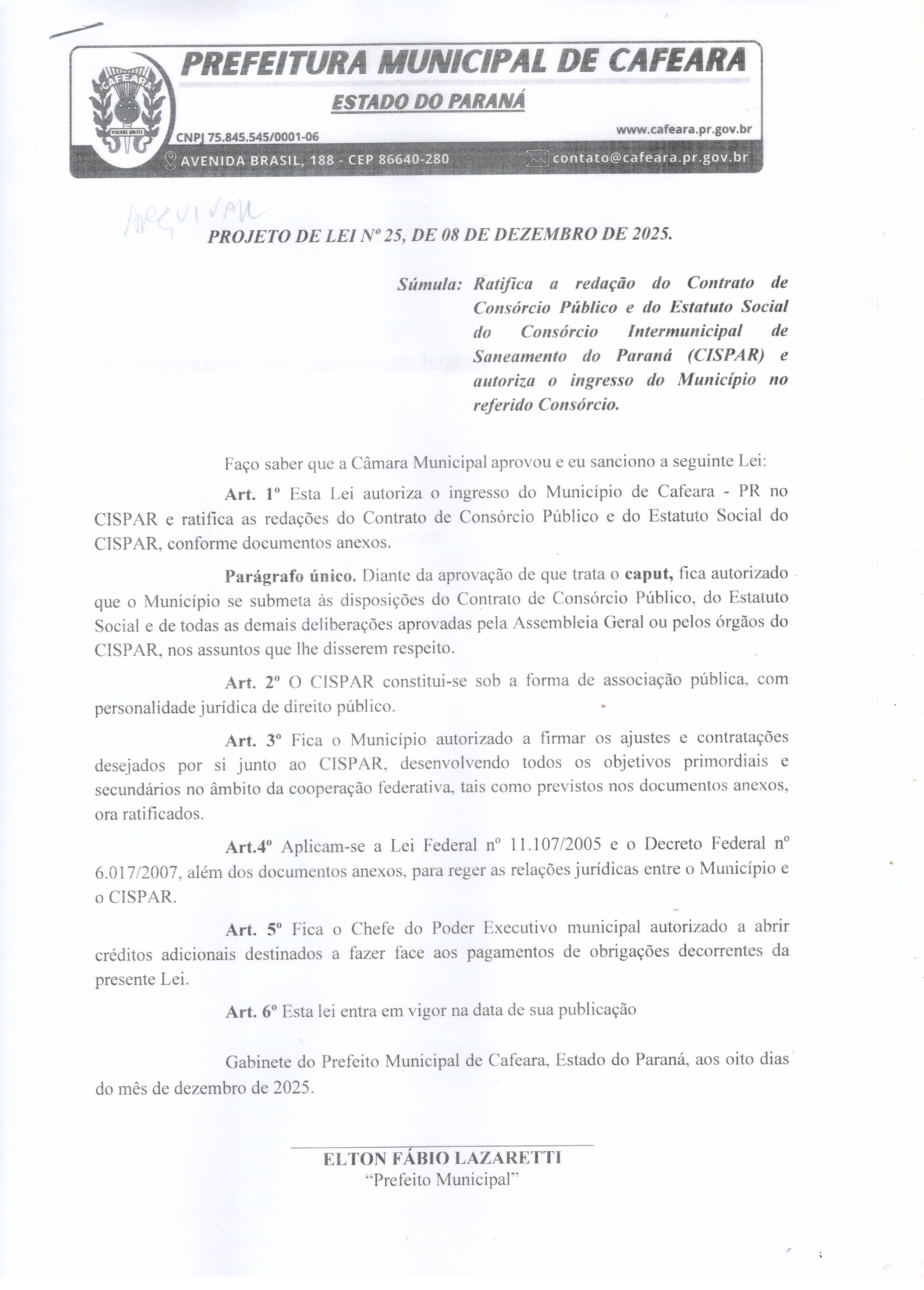 Nesta seção é possível consultar as Leis de Ratificação dos Municípios que integram o Consórcio Público Intermunicipal de Saneamento do Paraná (CISPAR).