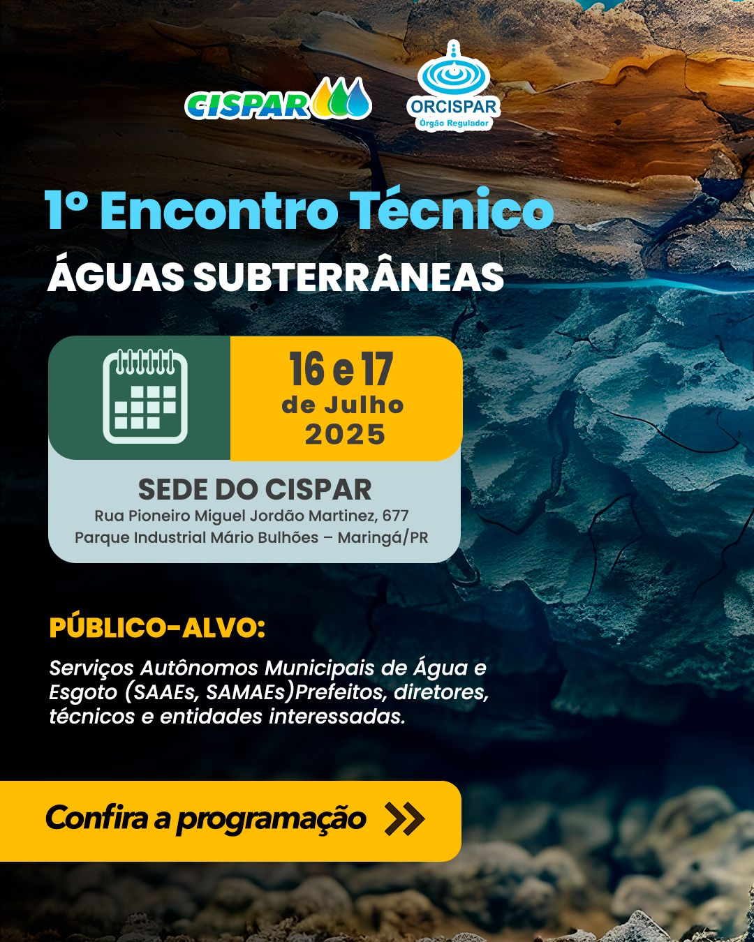 Nos dias 16 e 17 de julho de 2025, a sede do Consórcio Intermunicipal de Saneamento do Paraná (CISPAR), em Maringá, será palco do 1º Encontro Técnico – Águas Subterrâneas, evento que promete reunir autoridades, especialistas e instituições parceiras em torno de um tema essencial para o futuro da sustentabilidade hídrica.